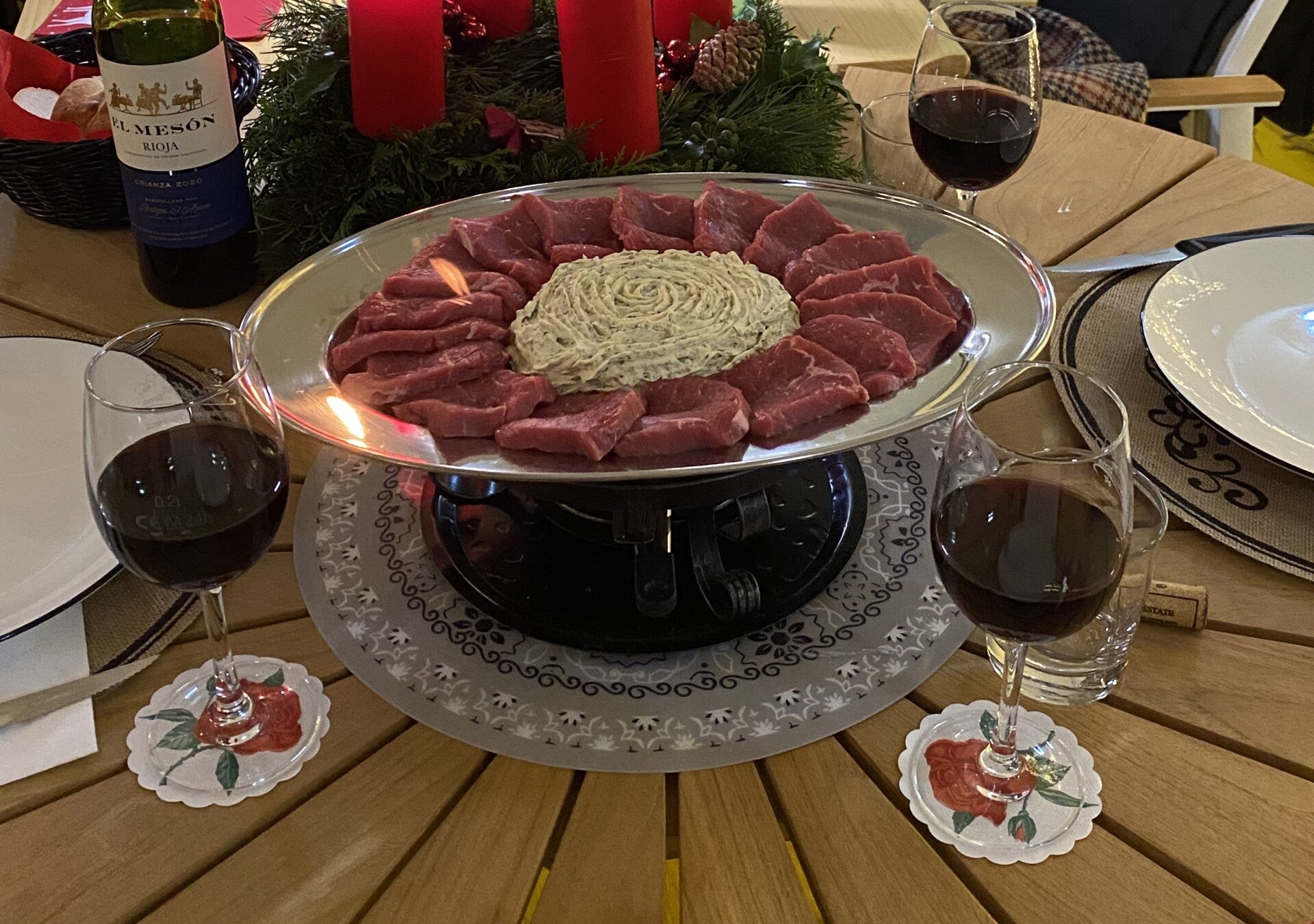 Auf dem Tisch-Rechaud können Sie dann Ihr Entrecote genau nach Wunsch im Kräuterbutter zubereiten.
